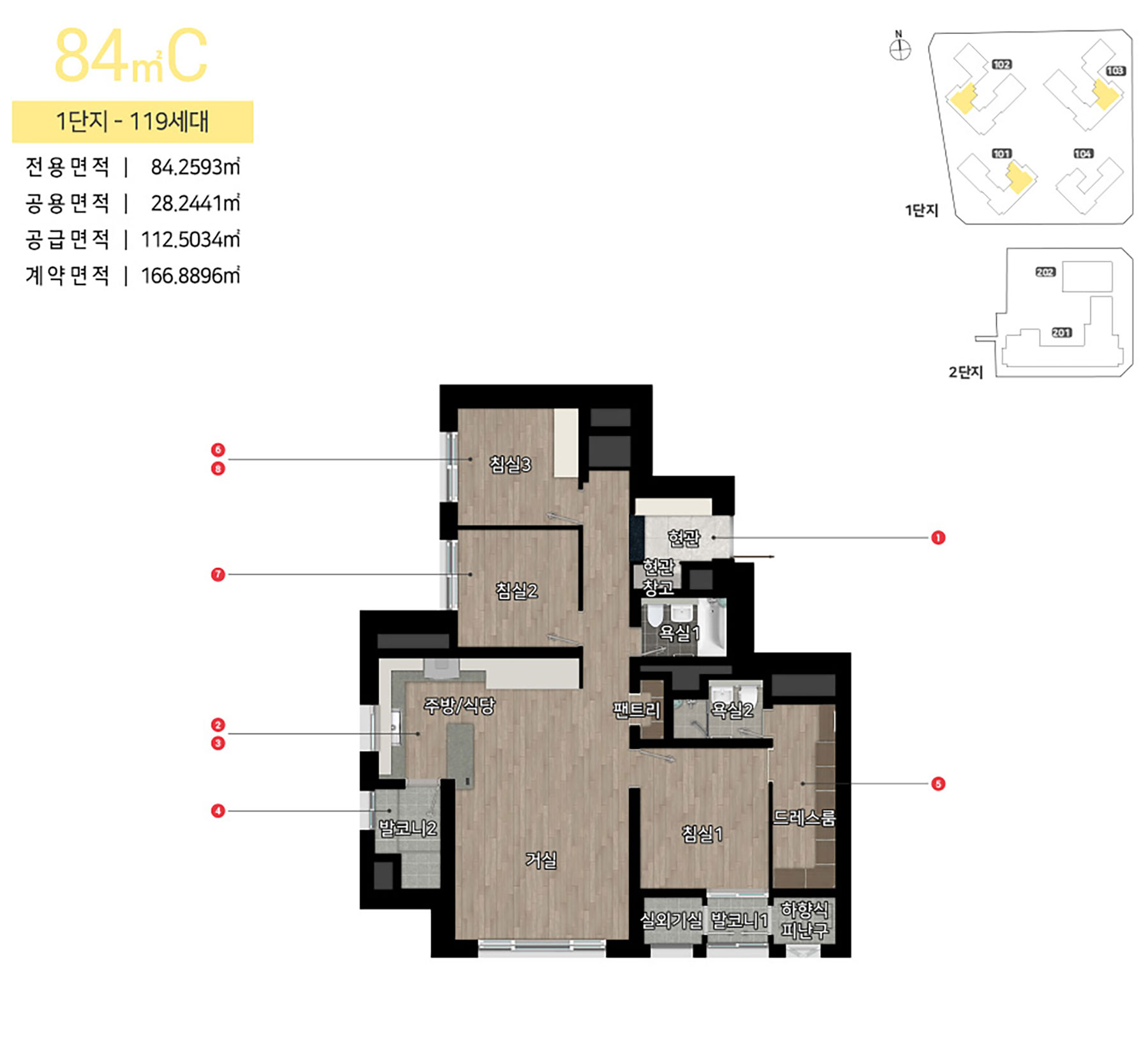 수납 공간을 특화하여 여유로운 주거 환경을 제공하는 실속형 평면 설계